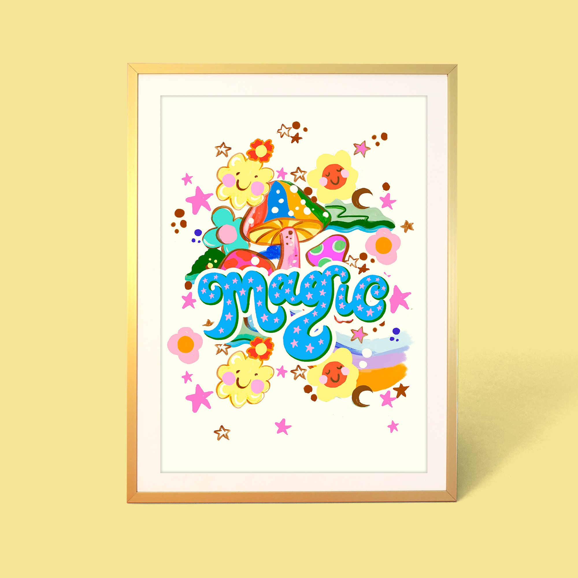Brighten up their world with this colourful Magic Flower Print. Featuring stars, rainbow toadstools, smiling clouds, and cheerful flowers, it’s bursting with joyful vibes and whimsical charm - perfect for inspiring little imaginations and adding a splash of magic to any room.