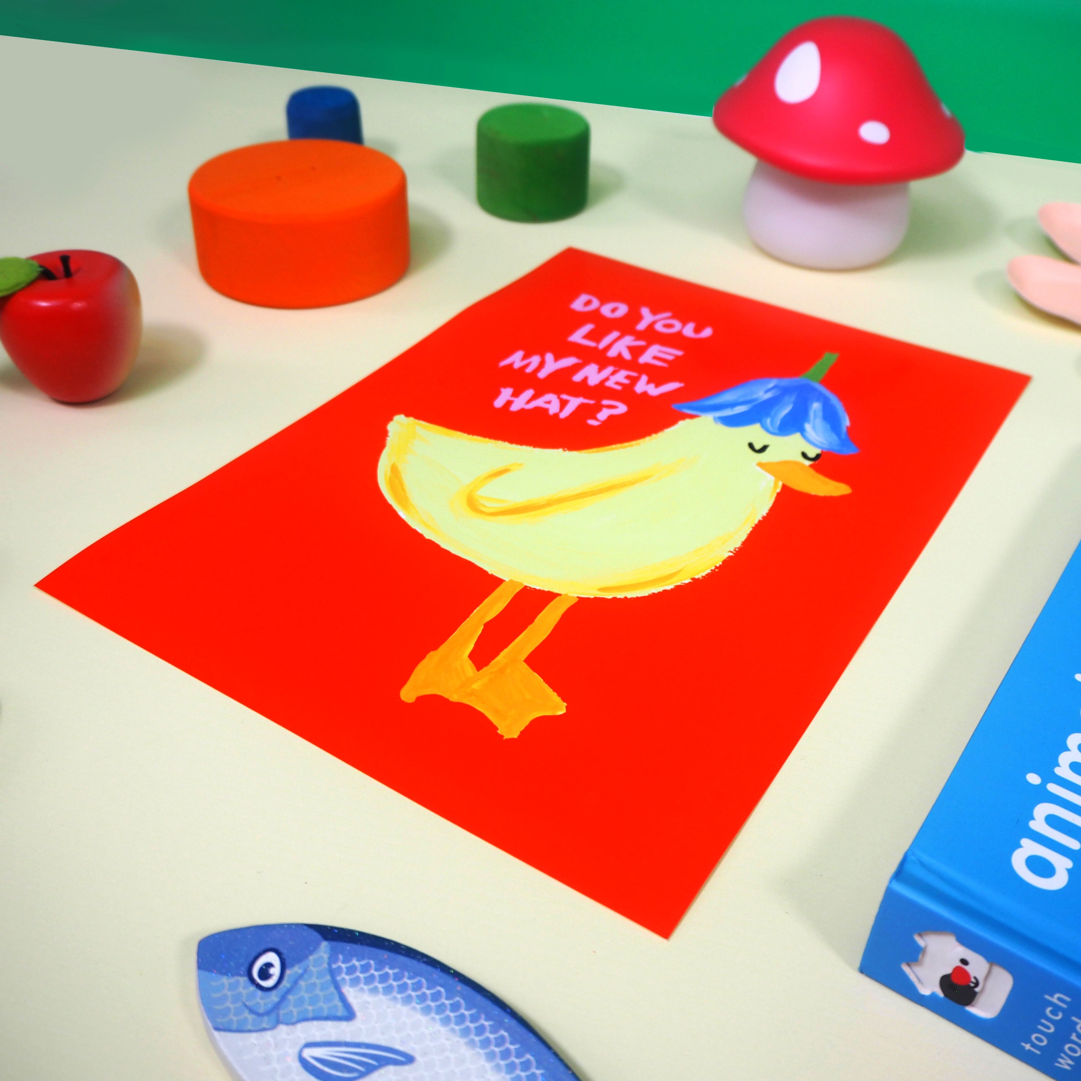 Our new range of kids prints are here! This adorable print features a little duckling with a fancy flower hat - what's not to love!?
