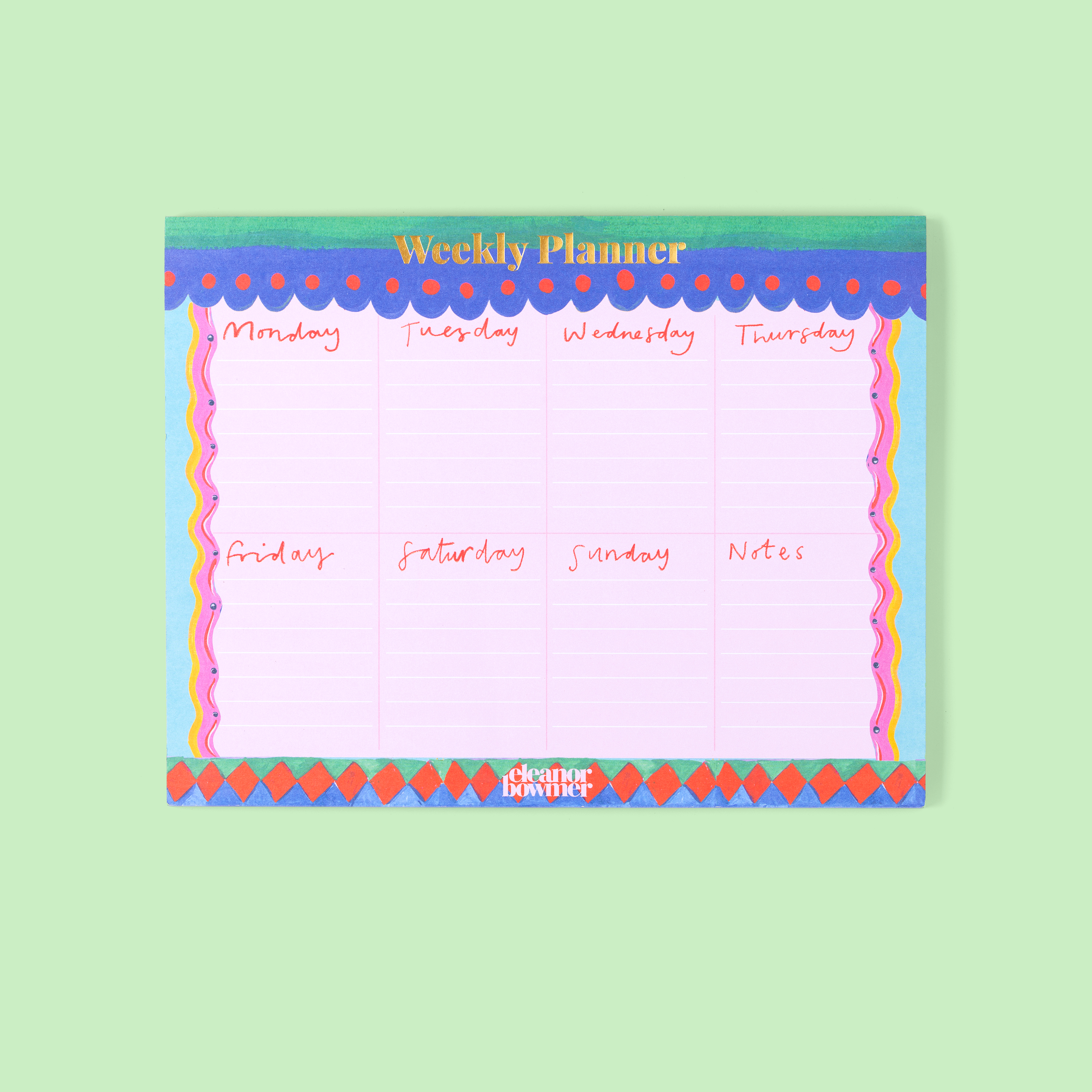 Planning just got prettier. This pastel weekly planner is all about getting organised without sacrificing style. With colourful wavy borders, space for each day plus extra notes, and gold foil ‘Weekly Planner’ at the top, it’s perfect for mapping out your week, planning meals, tracking deadlines or jotting down joyful little to-dos. As functional as it is fabulous.