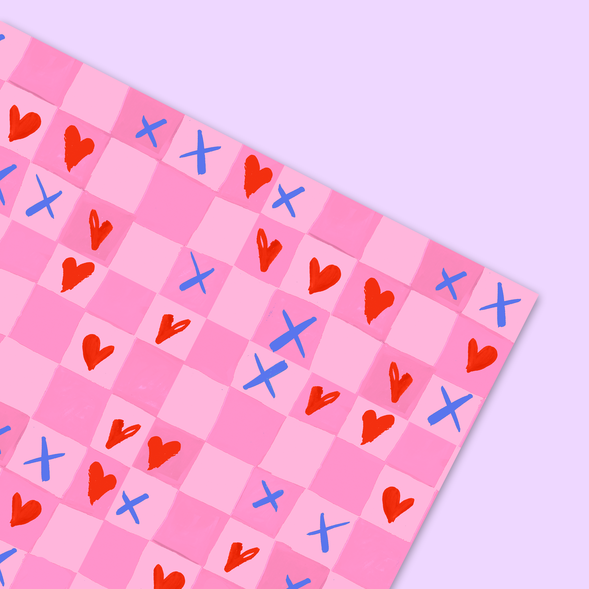 Make every gift a little sweeter with our Love Wins Gift Wrap. Featuring a pink checkerboard with noughts-and-crosses turned into hearts and kisses, this premium wrap adds a fun, playful twist to your presents. Bright, cheerful, and full of love, it’s perfect for Valentine’s Day, anniversaries, or any special moment worth celebrating.