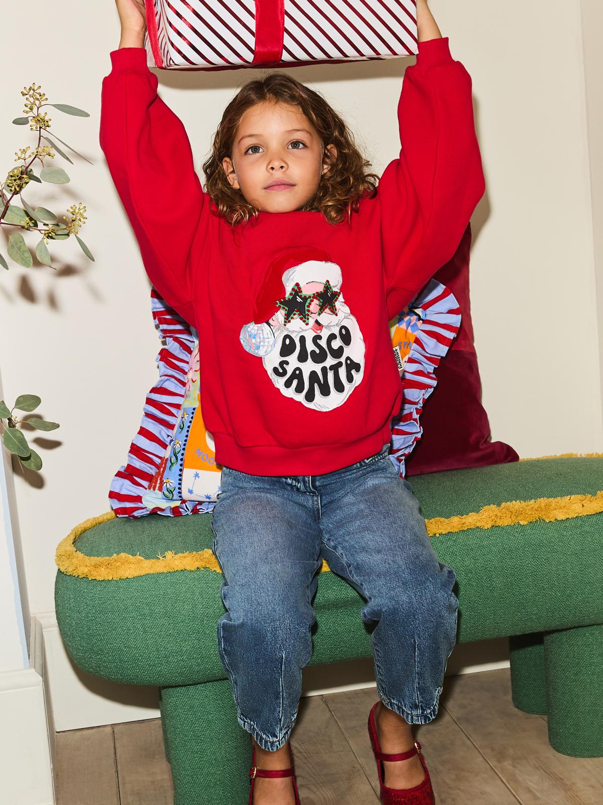 Disco Santa is here to bring the party! With his star-shaped shades, disco ball pom-pom, and glittering beard, he’s ready to boogie and spread festive cheer. Perfect for Christmas Jumper Day or any merry get-together, this kids’ sweatshirt guarantees festive fun - just add the giggles and dance moves! Also available in Adult sizes for super cute twinning or full family looks!