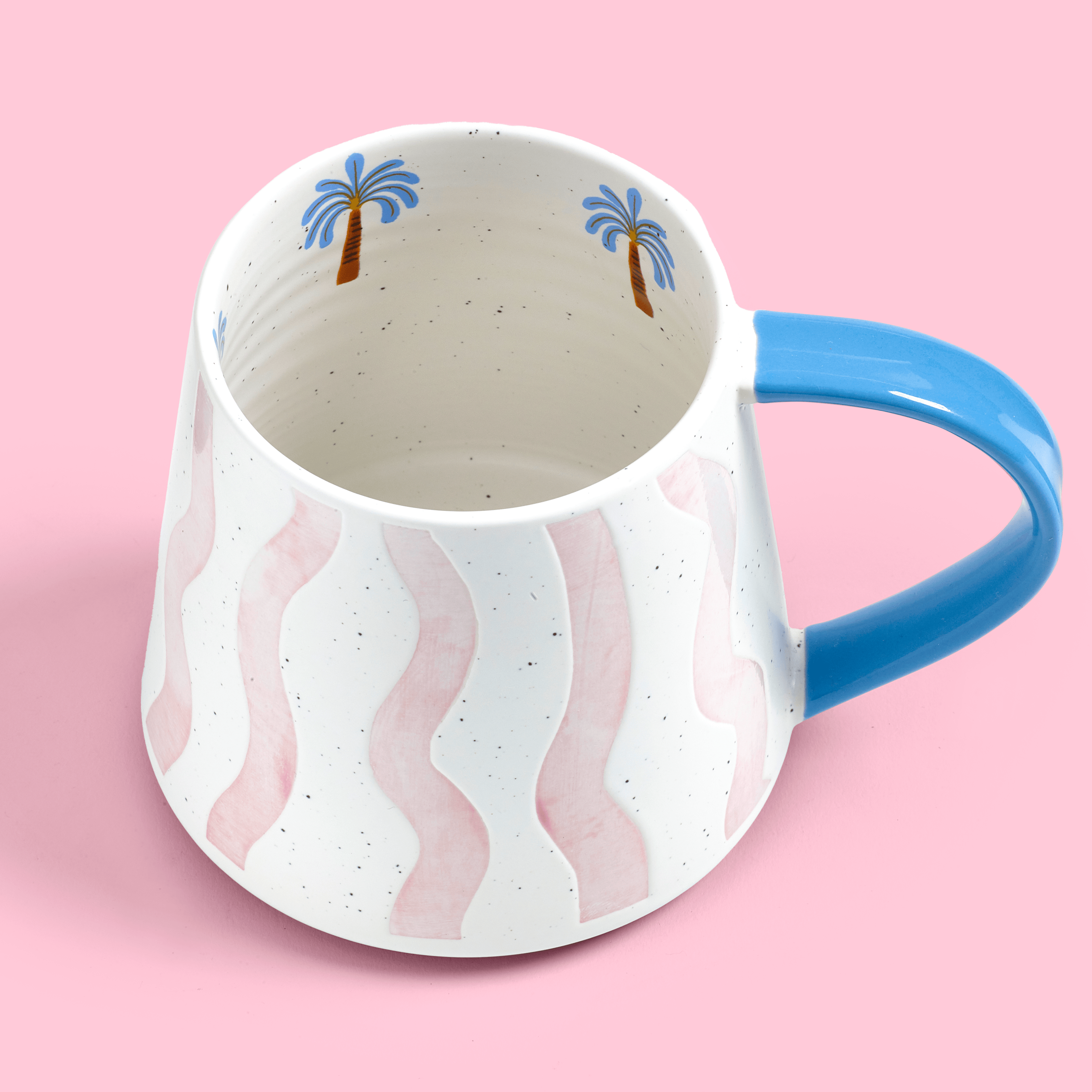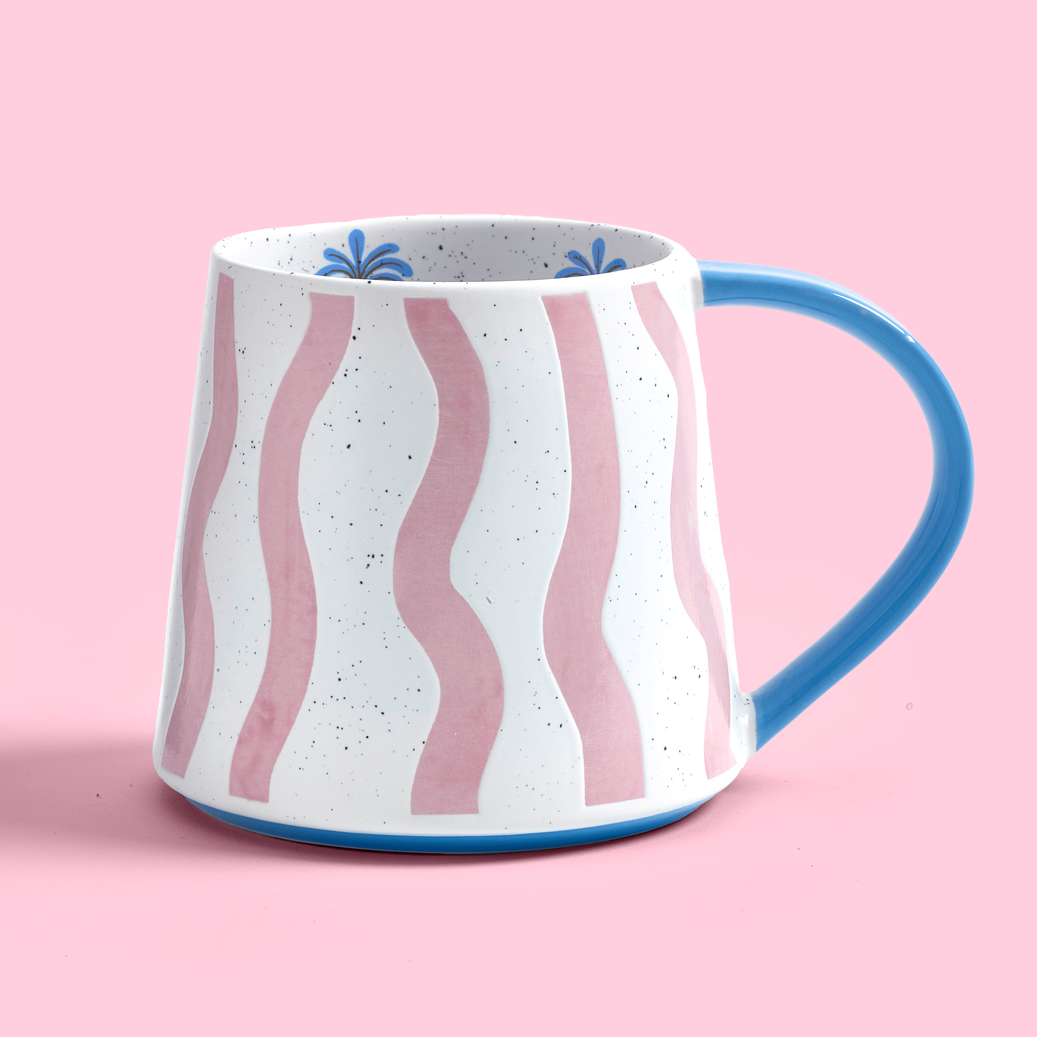Wave goodbye to boring morning coffees thanks to our Electric Coast Pink Wave mug. Part of our Electric Coast collection and crafted from stoneware with a wax-resist technique and speckle glaze, these mugs are presented in a gift-box for that extra-special finishing touch. The mug has a blue handle and border with pink wavey design. Dishwasher safe to be enjoyed again and again for years to come.