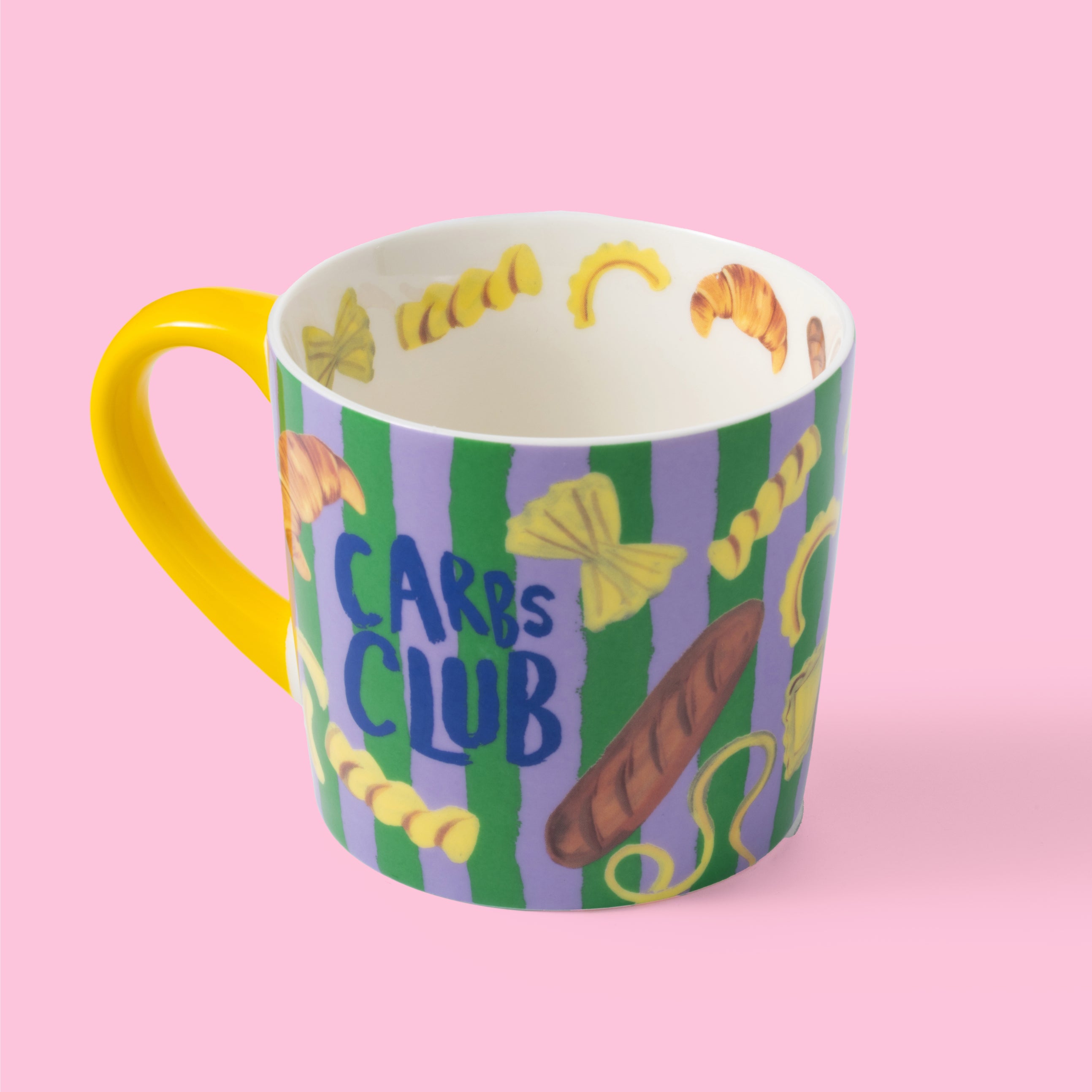 Welcome to the Carbs Club – where pasta, croissants and bread reign supreme. This green and purple striped bone china mug is the perfect kitchen companion. Want the full foodie fantasy? There’s a matching print and tea towel to complete your carb-loving collection.