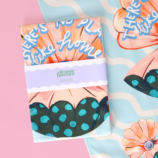 Home is where the tea towel is! The There's No Place Home Tea Towel brings warmth and coziness to your kitchen, reminding you there’s no place quite like it. Eleanor’s hand-painted design adds a charming touch, making it a lovely housewarming gift or an easy way to brighten up your own kitchen decor.
