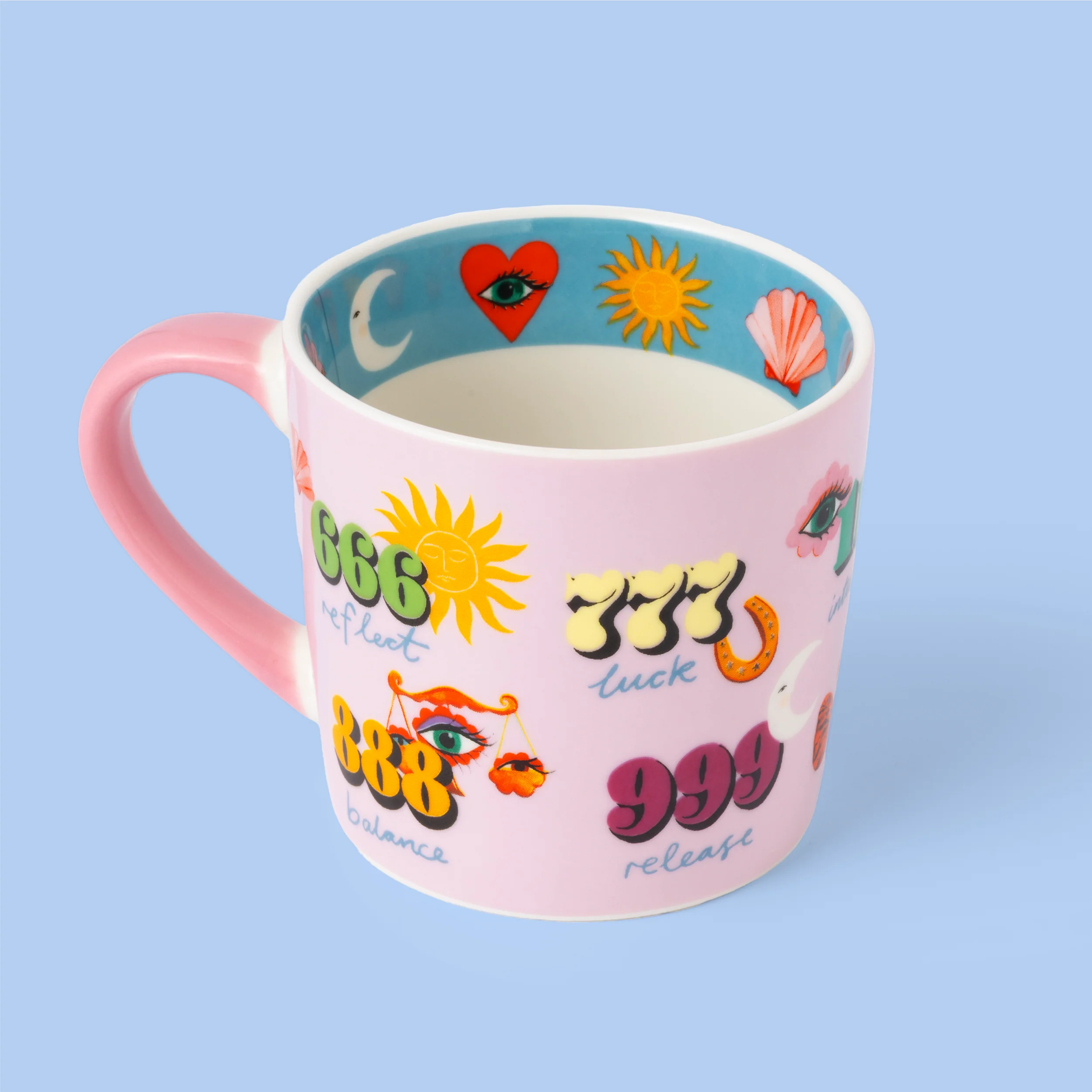Add a little everyday magic to your brew with our Angel Numbers mug. Featuring numbers like 111 for intuition, 222 for alignment, 444 for protection, and 888 for balance - each paired with a sweet icon - it's a charming dose of feel-good energy. Perfect for anyone who loves a comforting cuppa and a subtle sign from the universe.