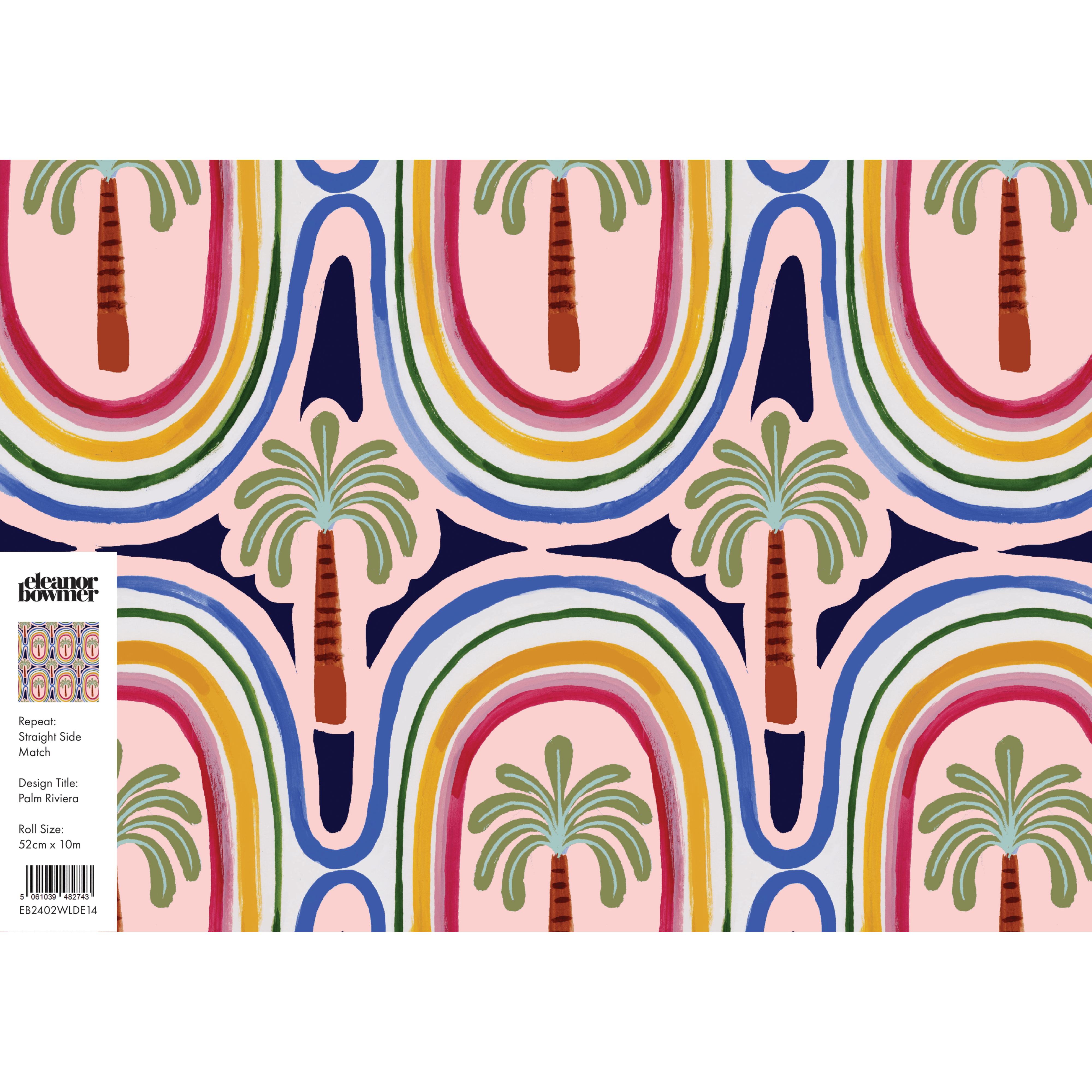 Transform your space with our Palm Riviera Wallpaper. The vibrant rainbow ovals create a playful and modern twist on a classic tropical wallpaper design. Bring luxury and life to any room with our high-quality wallpaper and pair with our matching accessories.