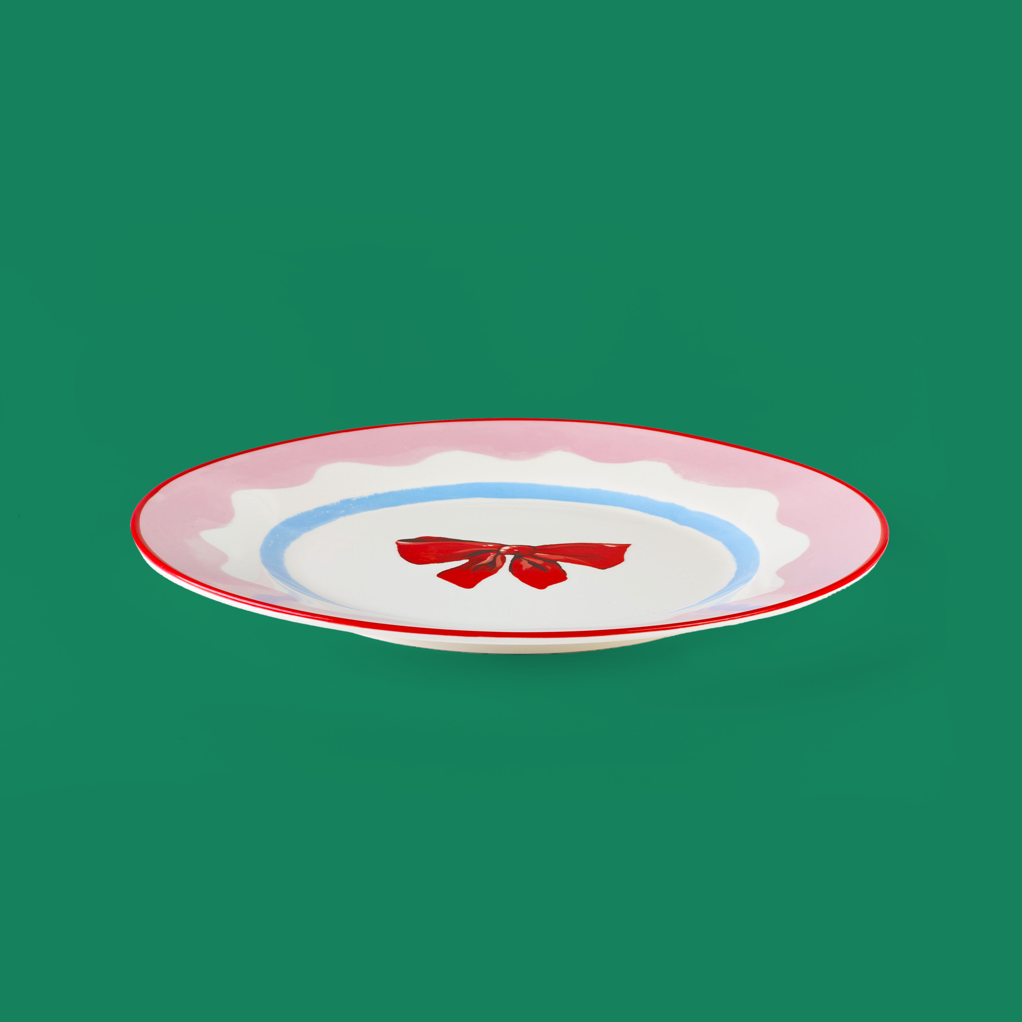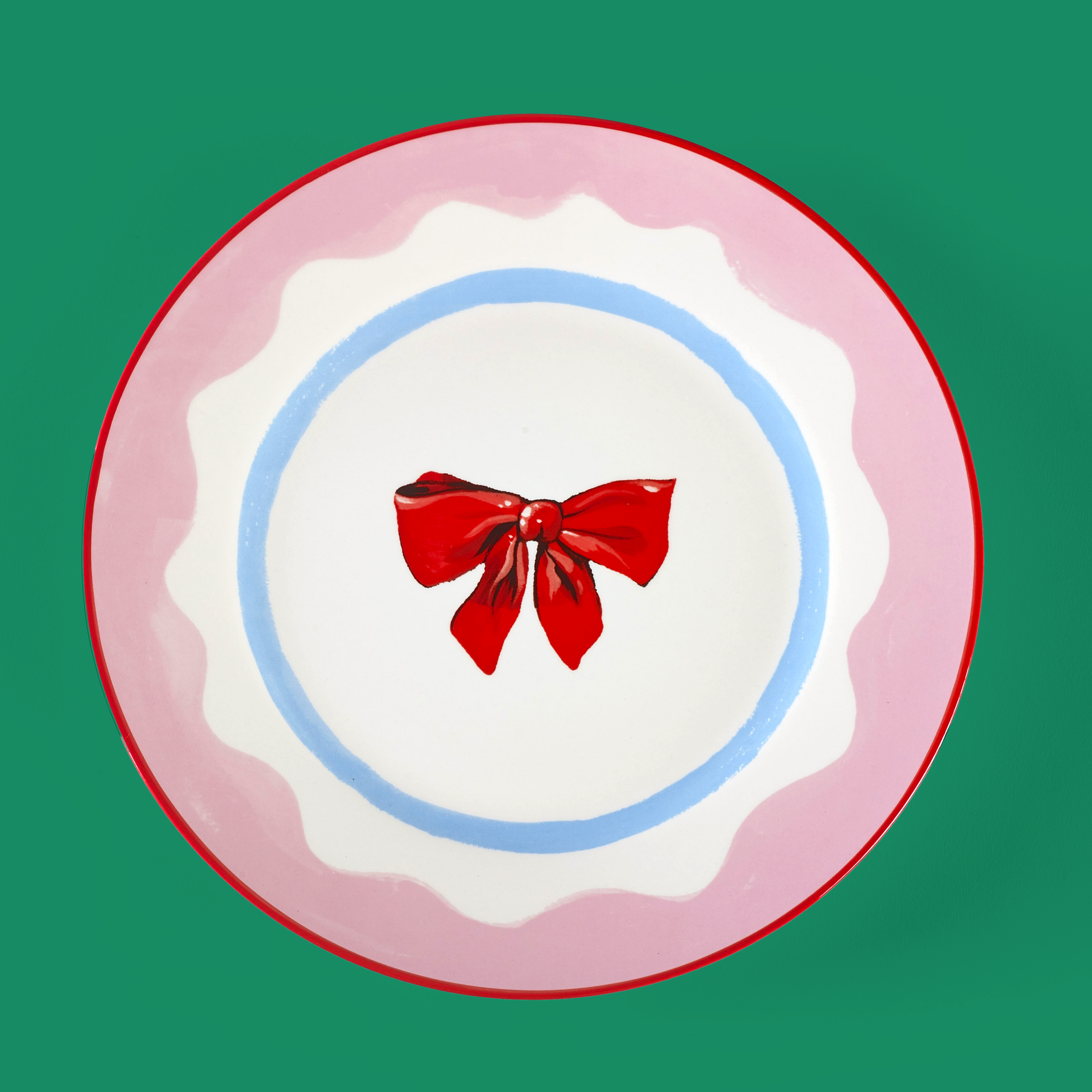 Bring a pop of playful charm to your table with our Bow Dinner Plate. With a bold red bow and joyful pink and blue border, it’s perfect for everything from brunches to Friday night takeaways. Whether you're hosting a party or just adding sparkle to mealtimes, it guarantees every meal feels fabulous.
