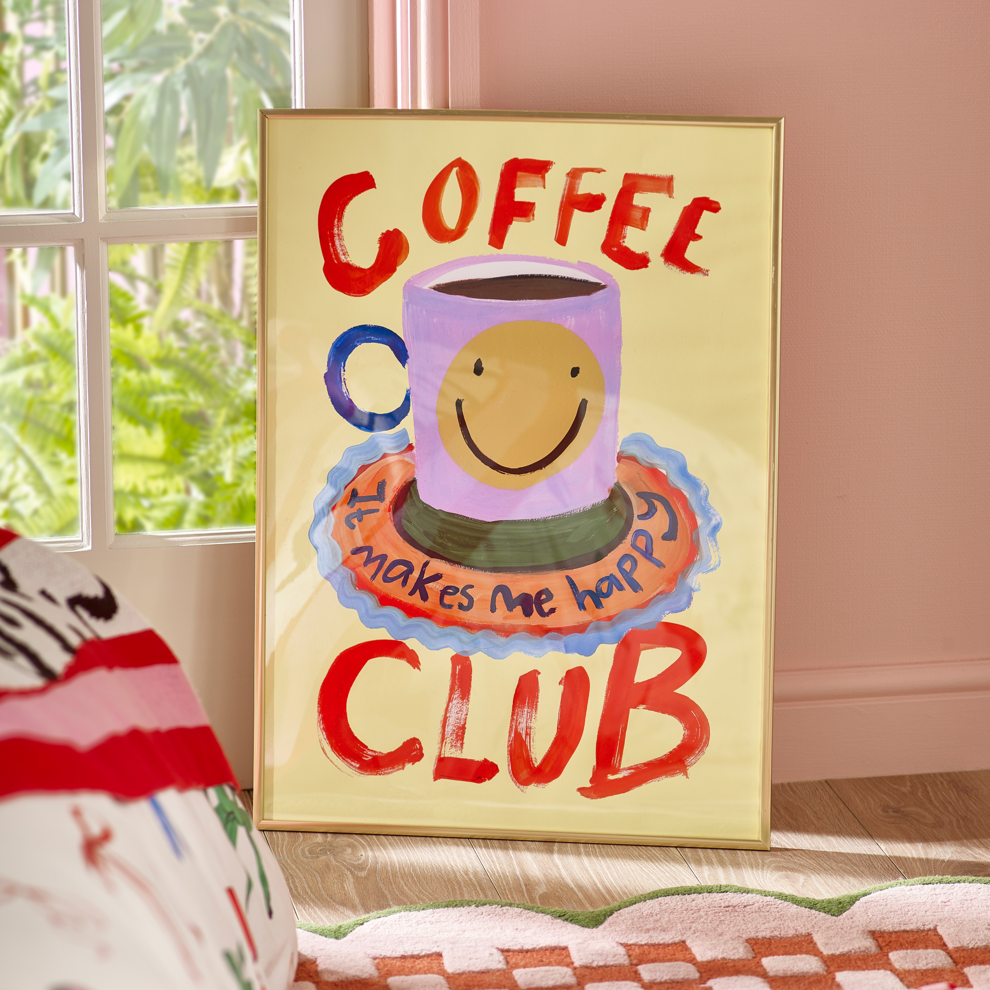 Coffee first, questions later. Featuring a sunny yellow backdrop, a smiley coffee cup, and the feel-good message “If it makes you happy,” this vibrant art print is made for true coffee devotees. Finished with bold red Coffee Club lettering, it’s the perfect pop of personality for your kitchen, office or caffeine shrine. Want the full set? Pair it with the matching mug and tea towel for maximum brew-loving joy.