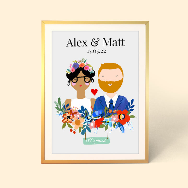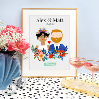This unique couple wedding print has many options for personalisation, which can create a real likeness to the bride and groom.