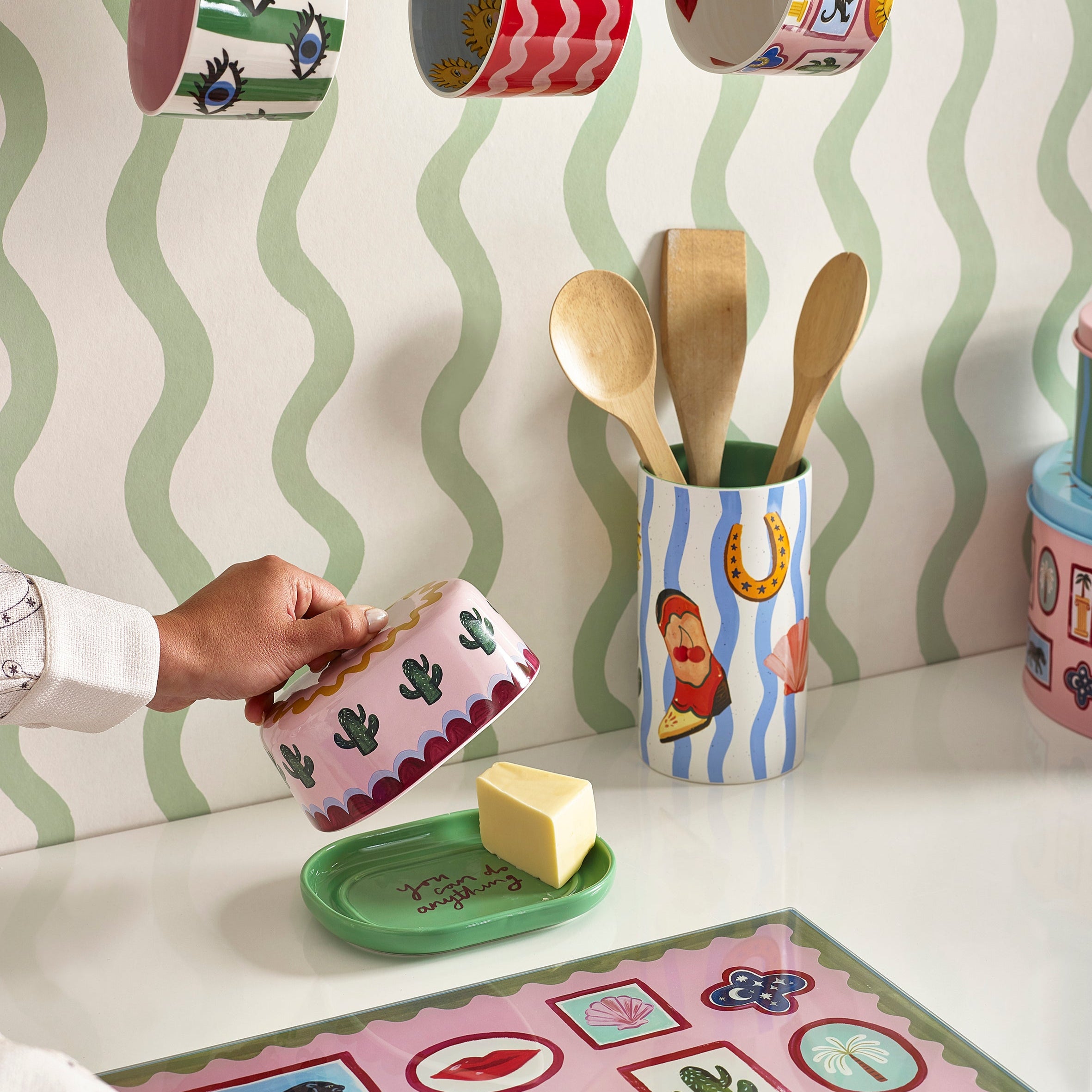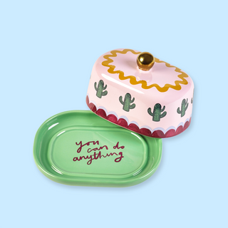 Serve up a little slice of sunshine with the Electric Coast Butter Dish. Adorned with playful hand-drawn cacti and a reminder that 'You Can Do Anything' (yes, even mornings), it’s here to brighten your breakfast table.