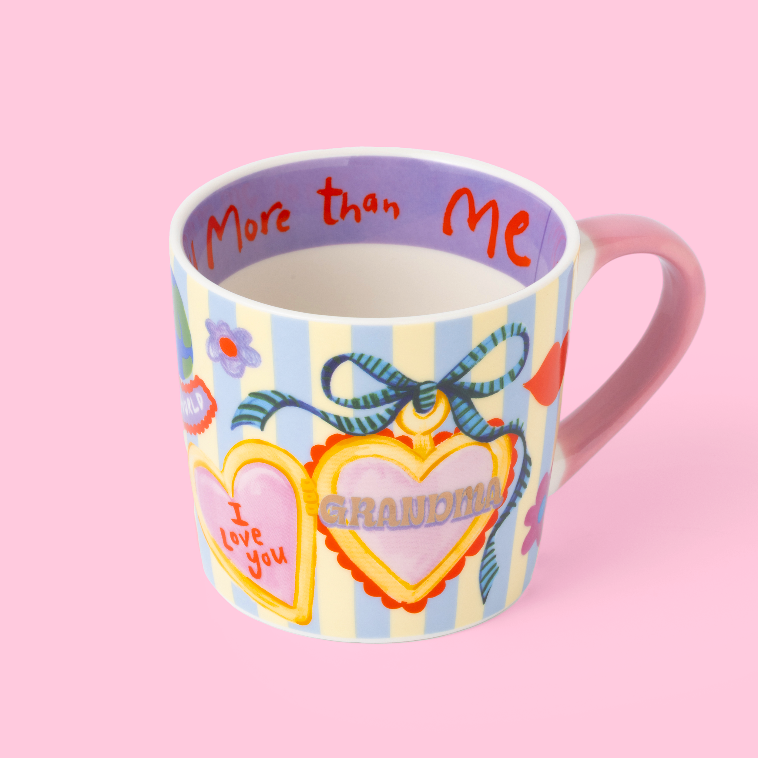 For the grandma who makes everything better. This Heart Charm Mug is a small celebration of her magic, featuring a ribbon-tied heart, glowing gold “Grandma” lettering and playful lip and flower icons. Inside the rim, a hidden message reading “no one loves you more than me” pops up with every sip, reminding her just how adored she is. Joyful, thoughtful and destined to become her favourite brew companion.