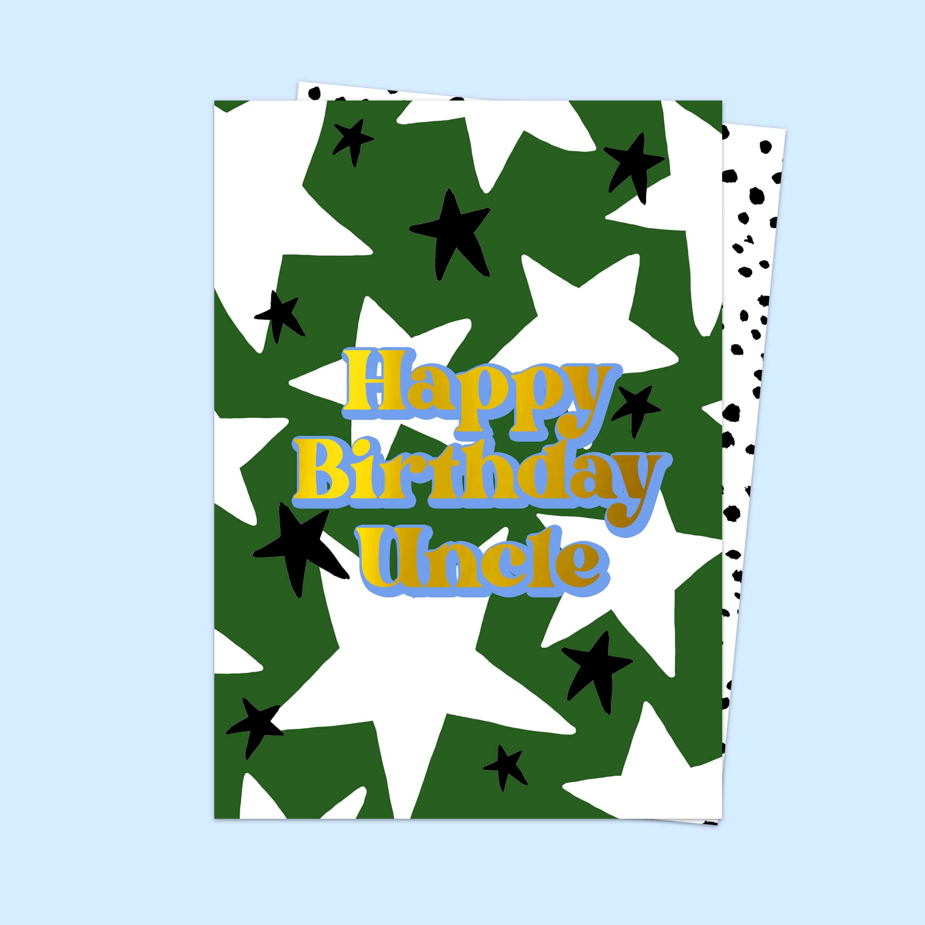 Celebrate your Uncle's special day with our Green Star Uncle Birthday Card. Featuring a vibrant green star background and pale blue and gold foil detail, this card is sure to make him feel loved and appreciated. Show him how much he means to you with this thoughtful card.