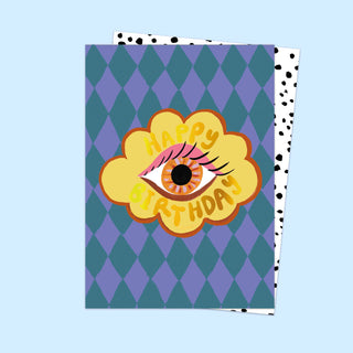 Make someone feel special on their birthday with our Happy Birthday Harlequin Eye Card. The blue checked background adds a touch of fun, while the illustrated eye in yellow adds a pop of colour. The Happy Birthday message in gold foil makes it a standout card for that special someone.
