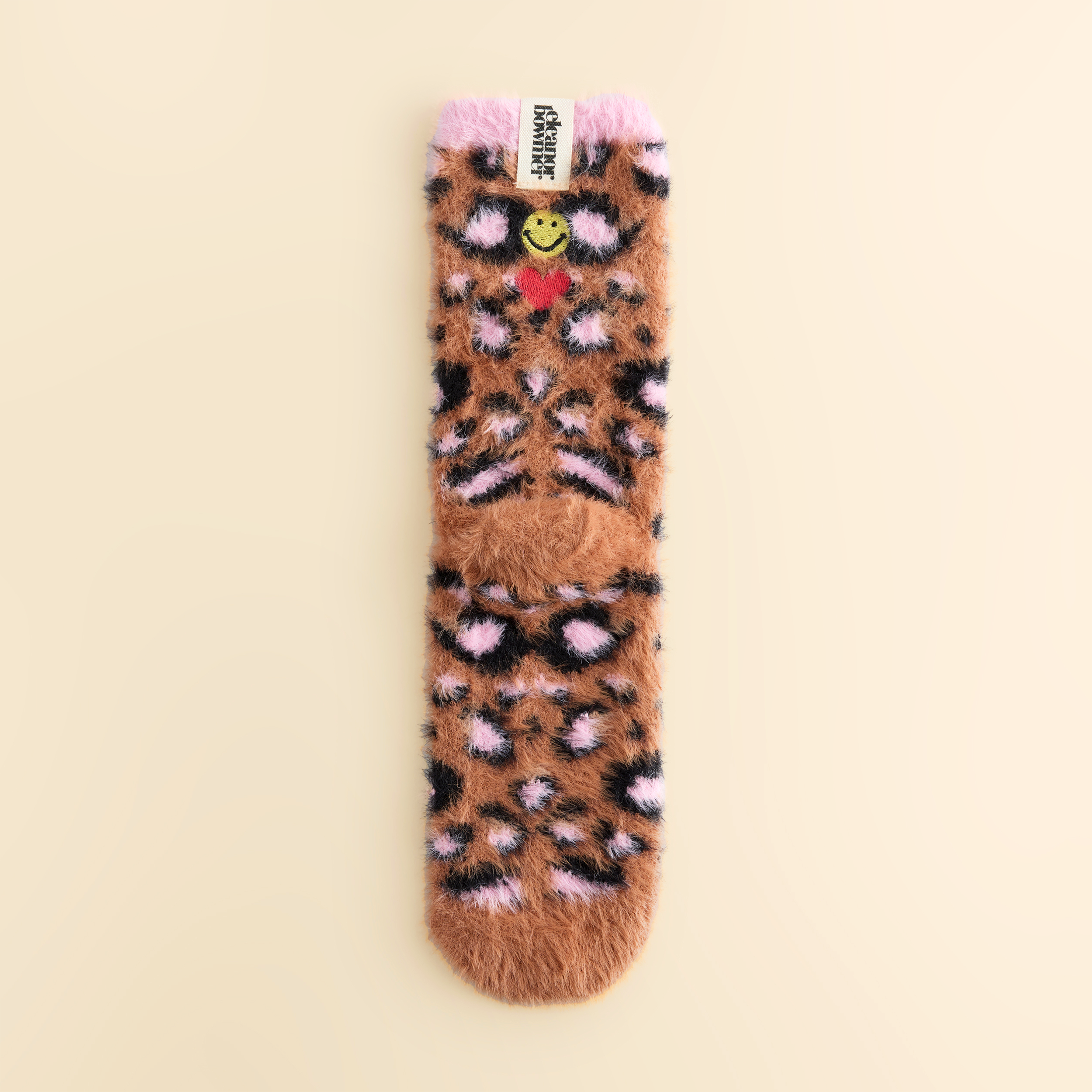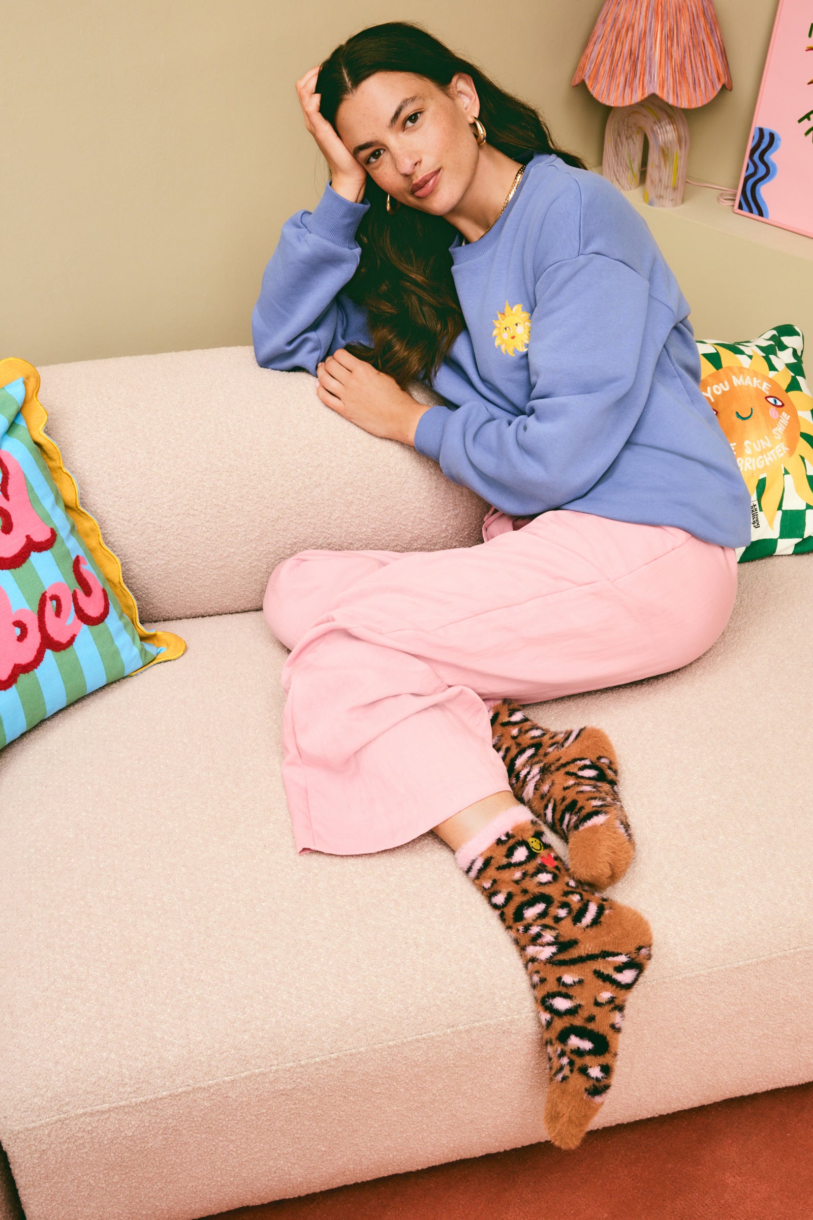 Kick back and cosy up with our Leopard Embroidered Cosy Socks! Fluffy, soft, and full of playful charm, they feature a pink trim, leopard spots, and cheeky smiley and heart embroidered icons on the ankle. Perfect for lazy mornings, movie marathons, or bedtime antics, they turn every at-home moment into a fun, feel-good treat.