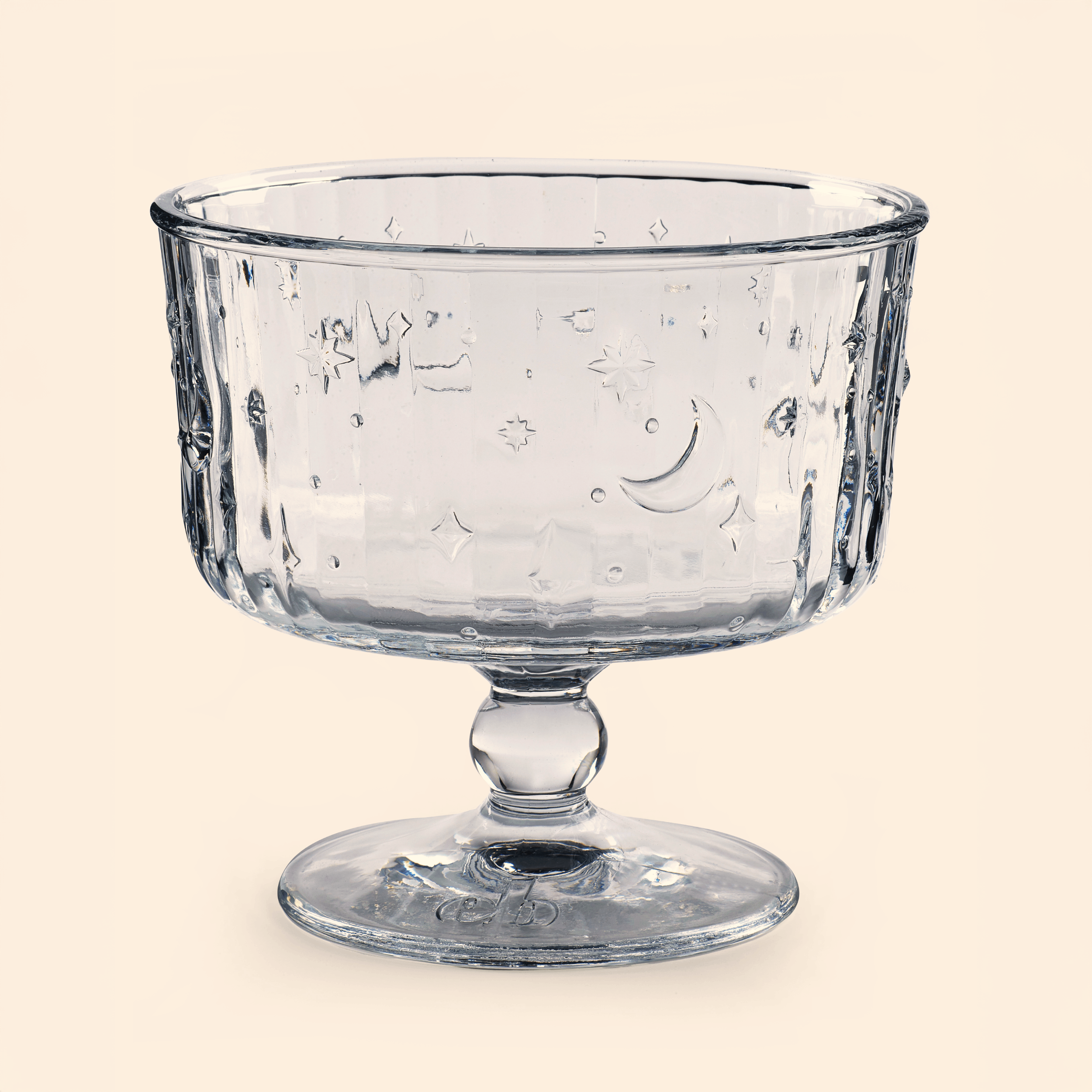 The large glass bowl features beautifully embossed moon and stars, adding a touch of romance to your dessert. Complete the look with matching tableware for a show-stopping tableware look.