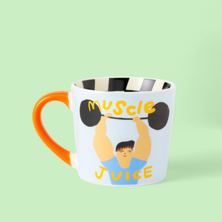 Looking for a gift for your gym-loving boyfriend or fitness fanatic dad? Look no further than the Muscle Juice Mug! With a strong man illustration and motivational message, this blue mug is perfect for fuelling up with coffee before the day starts.