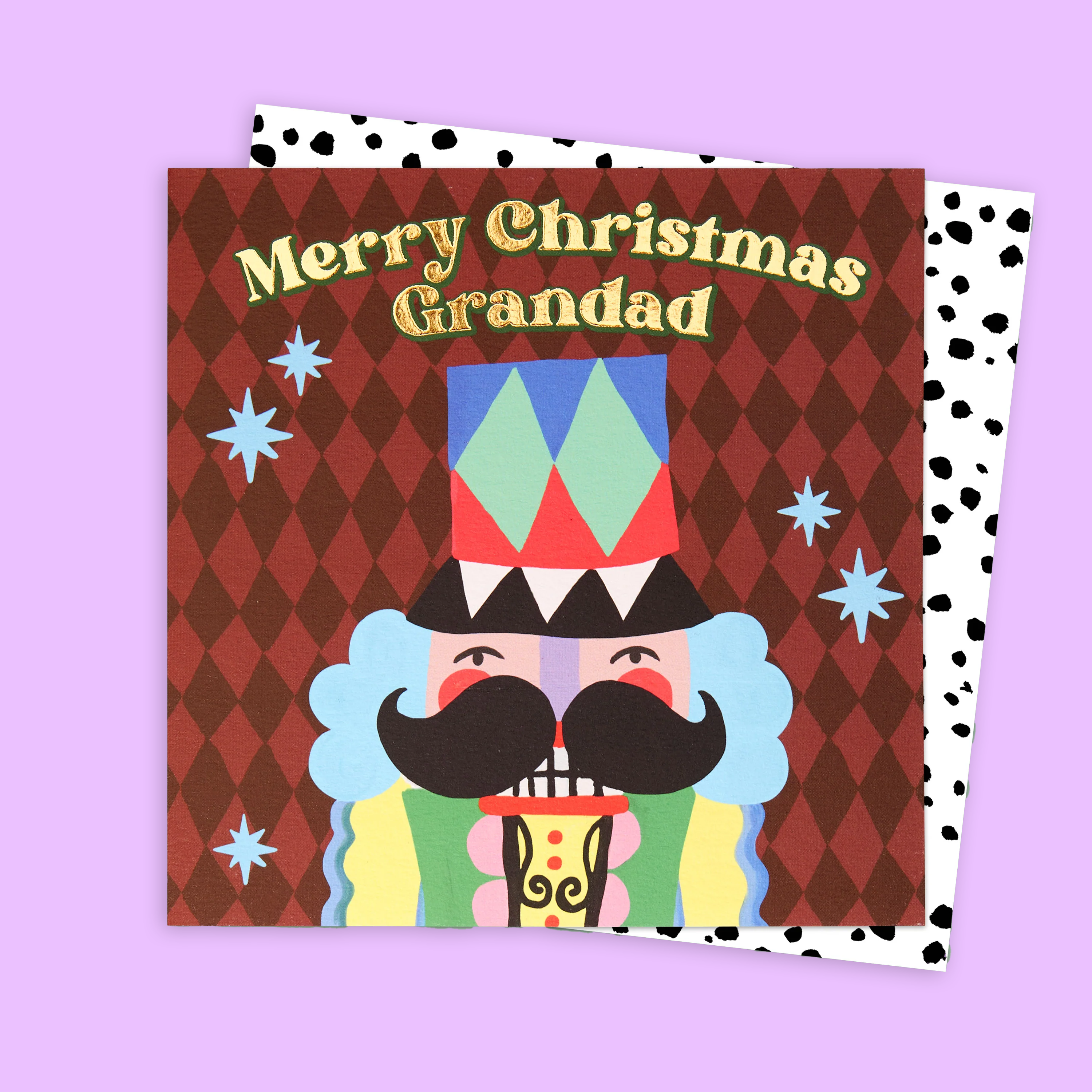 Bring a festive touch to Grandad's Christmas with this beautiful card. Featuring a brown harlequin background and classic nutcracker illustration with gold foil detail, it's the perfect way to show him how much he's loved.