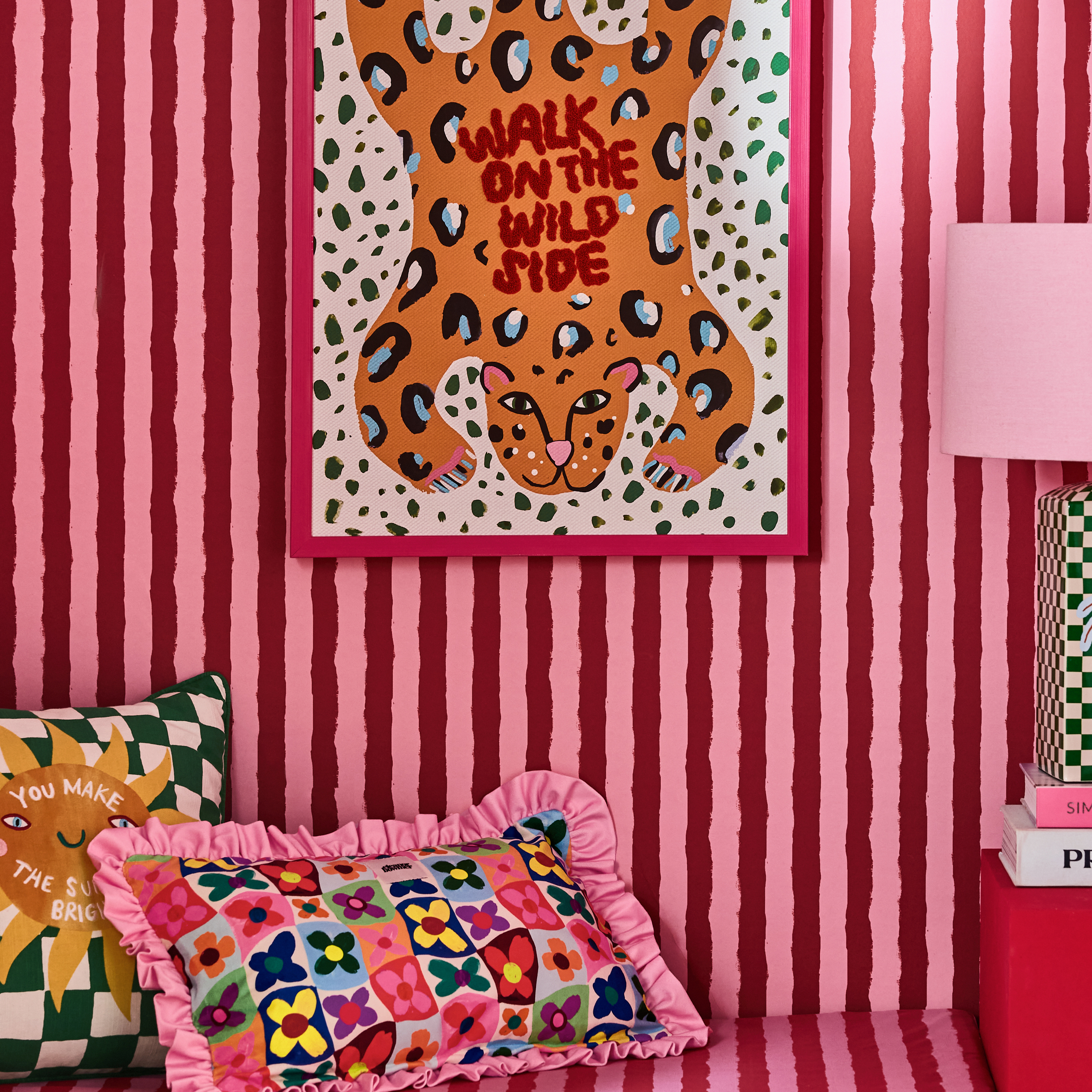 Transform any room into a vibrant and stylish space with our Red & Pink Painted Stripe Wallpaper. In a hand-painted style, this colourful striped design adds a touch of fun to any home.