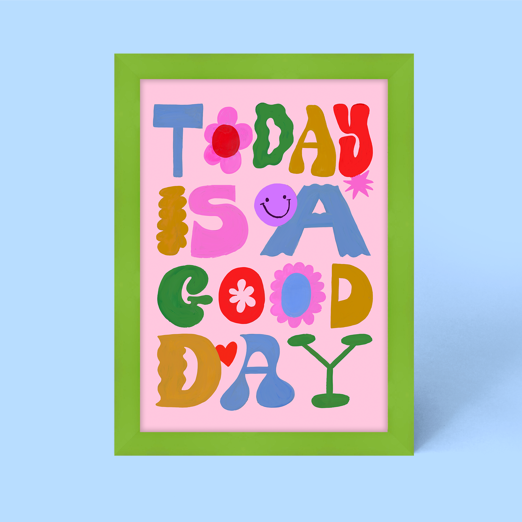 The Today Is A Good Day Framed Print is a little daily lift for your walls. Featuring originally hand-painted, groovy typography in cheerful colours, it’s designed to start your day on a positive note. Finished in your choice of frame colours and ready to hang, it’s perfect for bedrooms, hallways or workspaces that could use a bright boost.
